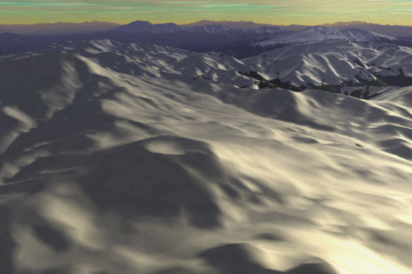 従来のものとの違いは雪と崖のマテリアルにハイライト成分をつけたことで、雪や岩の照かりが出るようになった。これは従来のバージョンでも手動で付加できる。